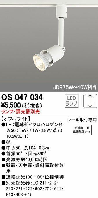 商 品 詳 細商品名インテリア 屋内 照明メーカー名オーデリック ODELICメーカー器具名称スポットライト仕様LED電球ダイクロハロゲン形φ50 5.5W・7.1W・3.8W/φ70 10.5W(E11)● 鋼● 0.3o光源寿命40,000時間壁面・天井面・傾斜面取付兼用連続調光100-10%・位相制御注意事項◆写真方向以外取り付け不可 ※施工・電気工事は専門業者にご依頼ください。