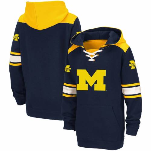 コロシアム COLOSSEUM ミシガン ウルヴァリンズ 子供用 フーディー パーカー 紺色 ネイビー 【 COLOSSEUM YOUTH LACEUP STRIPED NAVY 】 キッズ ベビー マタニティ トップス
