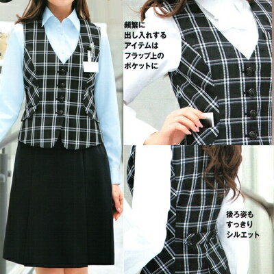 事務服・制服・オフィスウェア ヌーヴォ FV30599 ベスト 17号・ホワイト×チャコール1