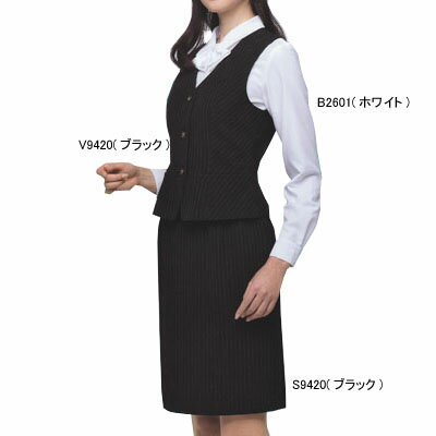 事務服・制服・オフィスウェア ピエ V9420-99 ベスト(3ツボタン) 19号・ブラック