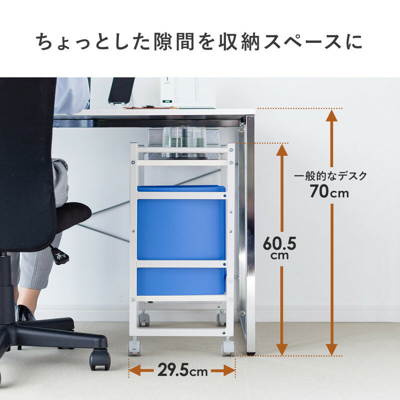 <特長>●デスクの下などで活用できる、シェルフワゴンです。