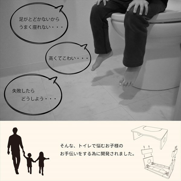 商品について: このトイレ用踏み台は、トイレの便器にスポッと合わせるように天板が半円形にカットされ取り外せるので、お子様が便器の側まで行っておしっこができるので、こぼしにくくトイレトレーニングに最適。